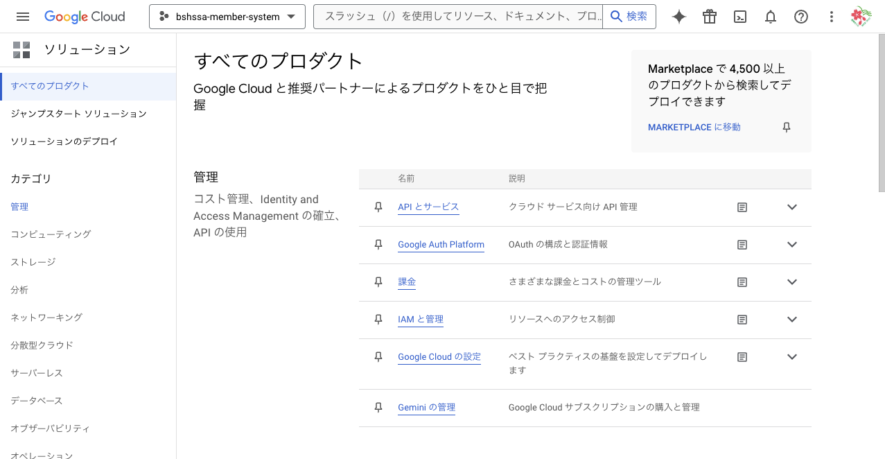 今回は、プロジェクト ID を bshssa-member-system としている。